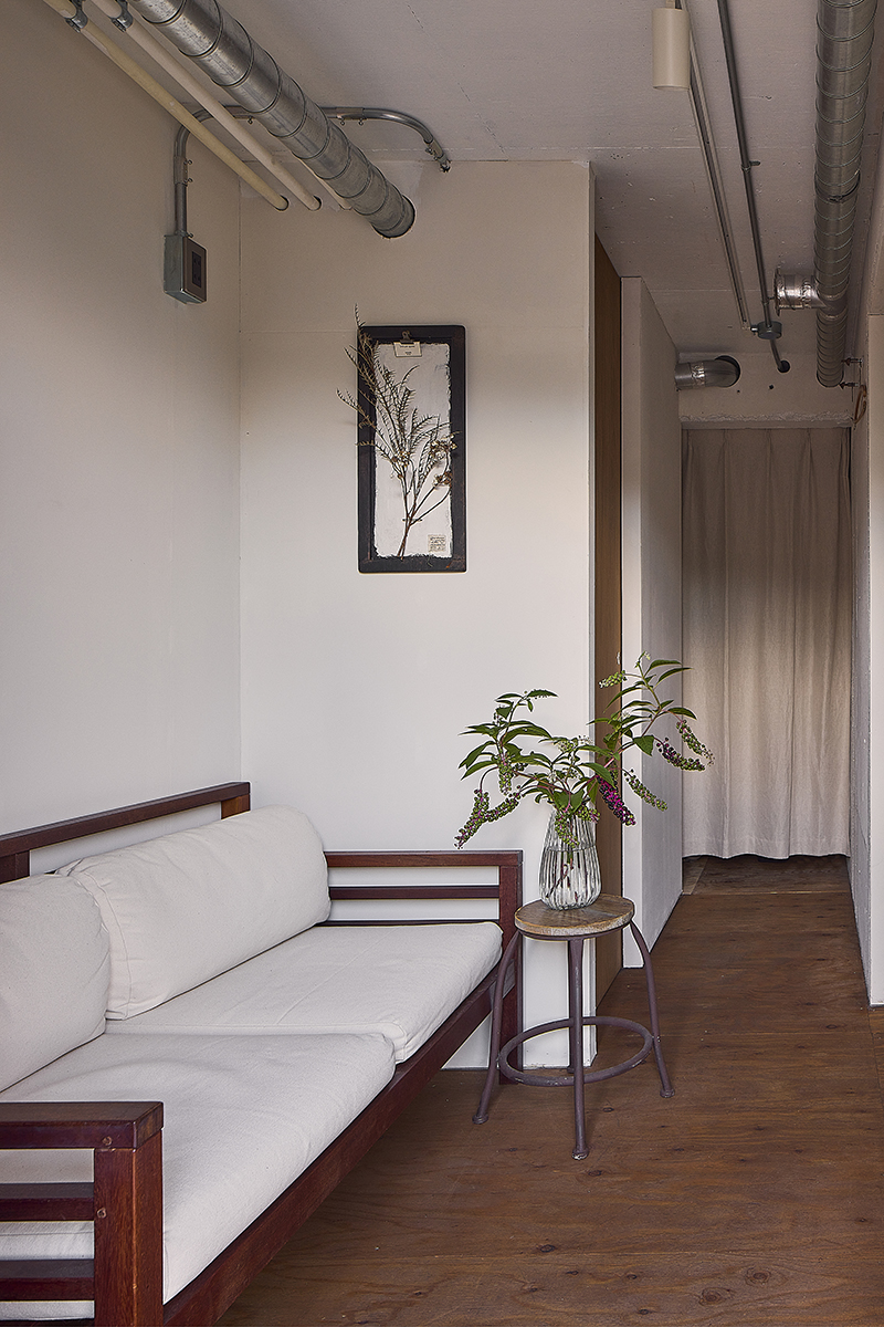 In 2021, the "Yuko House" underwent a renovation, transforming the first-floor storage space into the hair salon "sabrina hair." This project aimed to utilize the existing elements of the building while creating a new, captivating space.