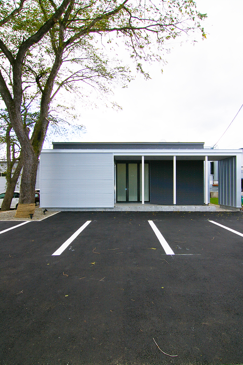 In response, we chose to preserve an existing Itaya maple tree that had been growing on the site before development. The building was planned around this tree, allowing its natural presence to soften the hard and industrial character of the metal exterior.