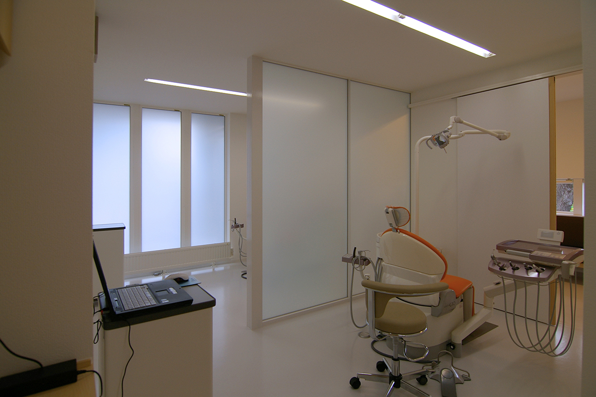 待合室からは各治療ユニットへ直接アクセスできる動線とし、スタッフ動線とは交差しない計画としています。