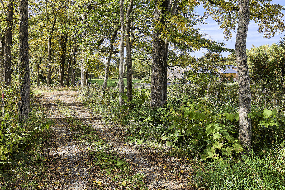 防風林に囲まれた敷地中央には、シンボリックな3本の木(サン本)がそびえ、その周囲に散在する小屋群(サン在)が特徴的な風景を形作っています。敷地へのアプローチでは、防風林を抜けて徐々に建物と木々が視界に現れるよう設計し、訪れる人々に期待を持たせるように設計しました。