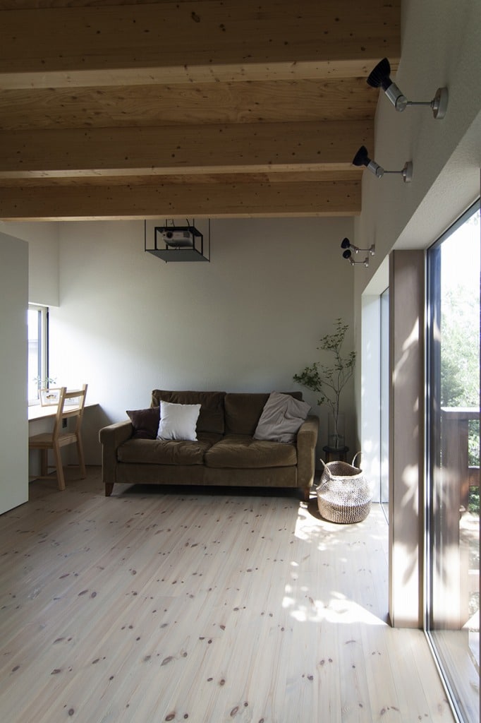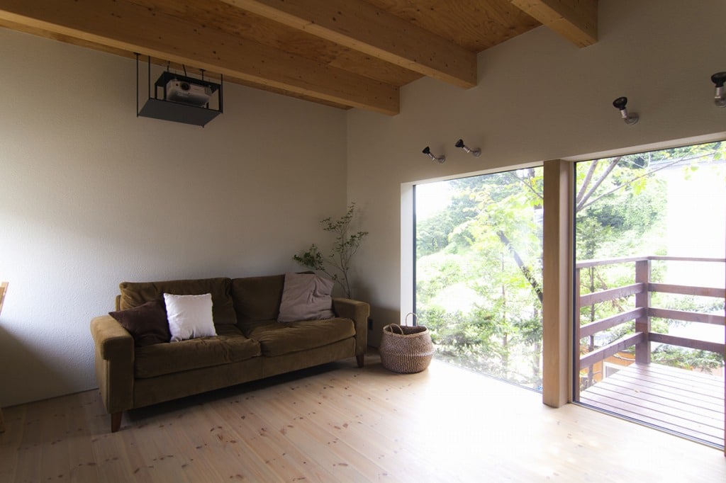 On the south side, where the house is overlooked by neighboring buildings, openings are kept to a minimum to ensure adequate natural light and ventilation. On the north side, however, the view opens up to a landscape of trees and the cityscape of Sapporo. The building is designed with an L-shaped plan, oriented towards this scenic view. The design successfully balances a quiet environment with a beautiful outlook.