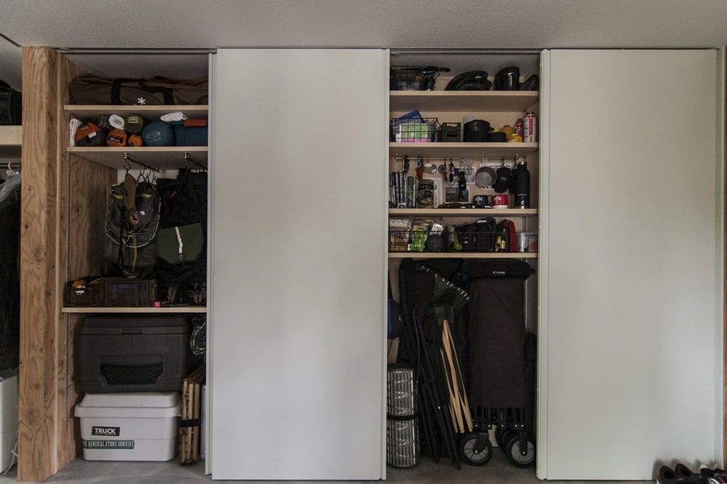 コンクリートの高基礎は、外気と室内の熱をやさしくつなぎ、蓄熱性を活かして居住空間の温度を安定させています。広い玄関土間は、趣味のアウトドアギアの手入れや保管にも最適で、実用性と快適性を兼ね備えた空間となっています。
