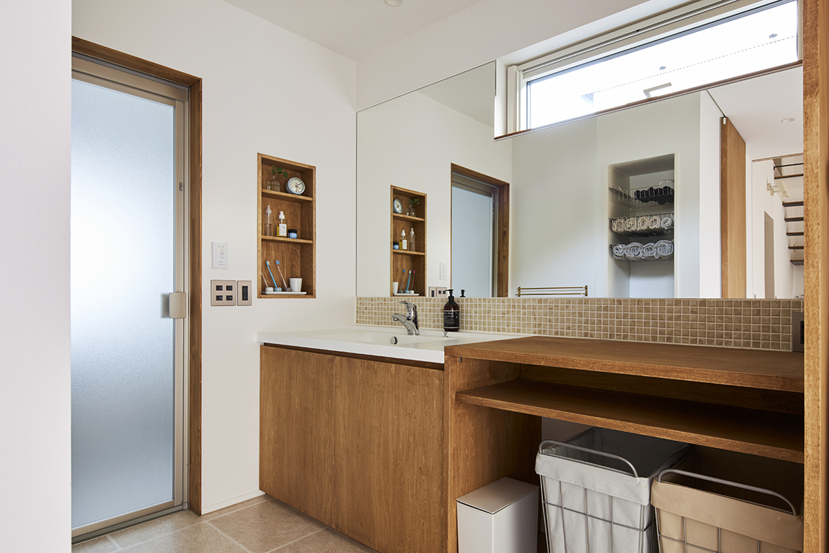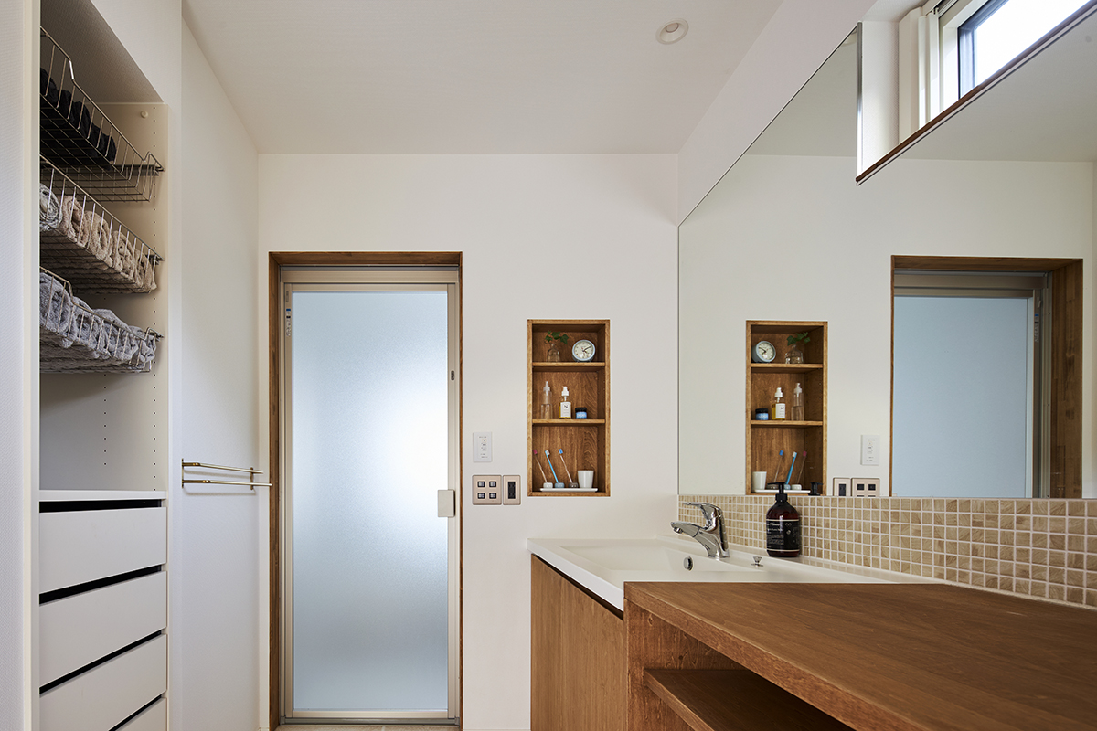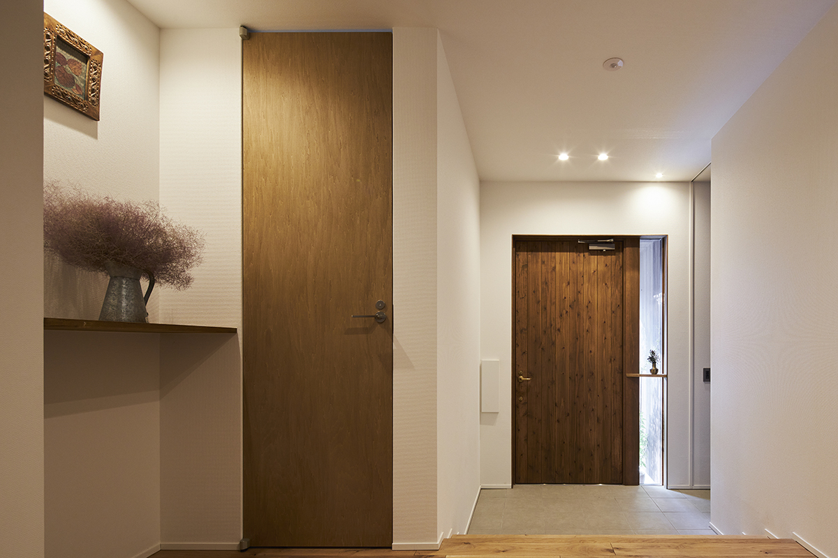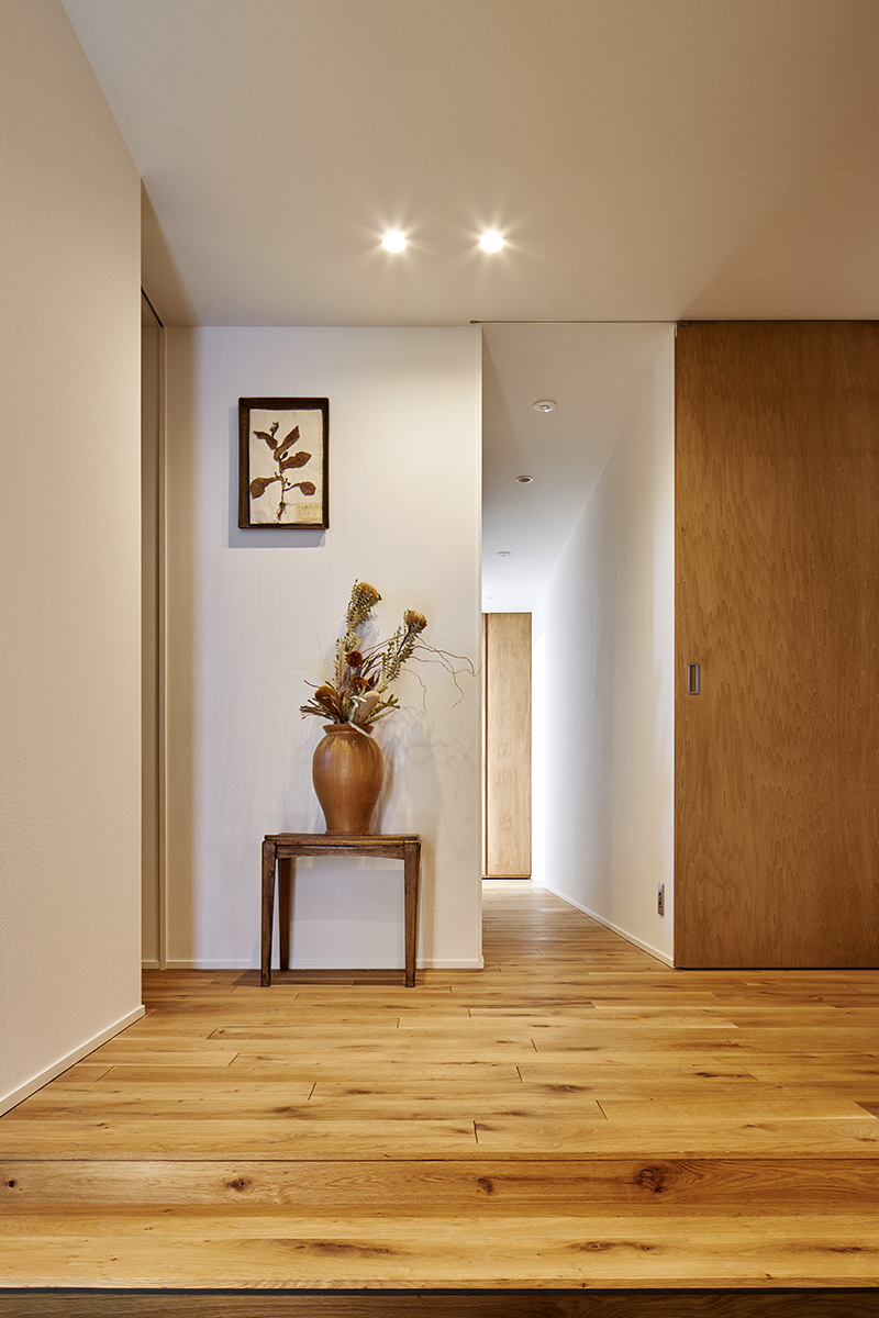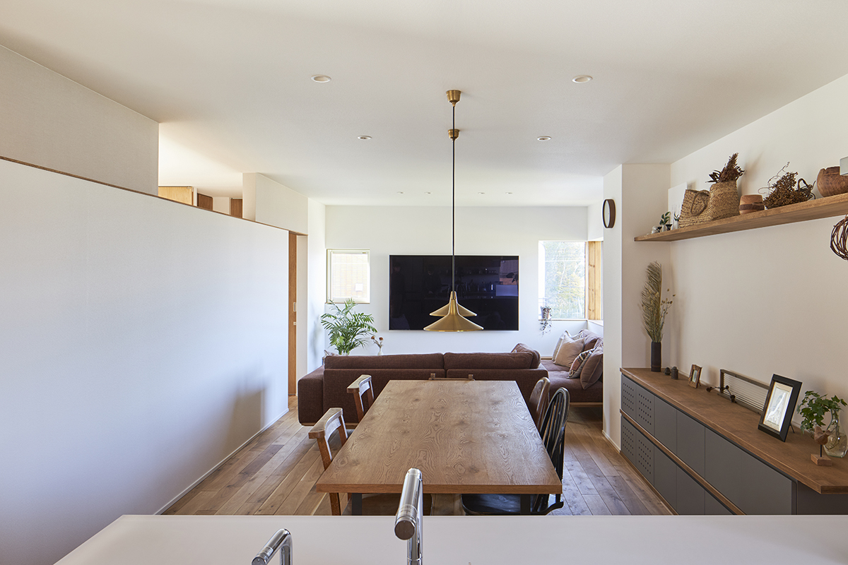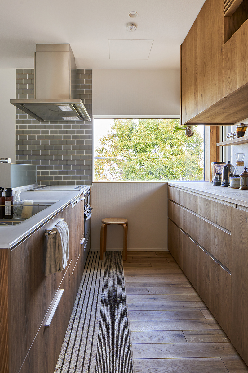 室内で使用する材料は、この優しい光に調和するように、落ち着いた色味や質感のものを選びました。これにより、全体的に空間が一体感を持ち、心地よい居住空間が完成しました。