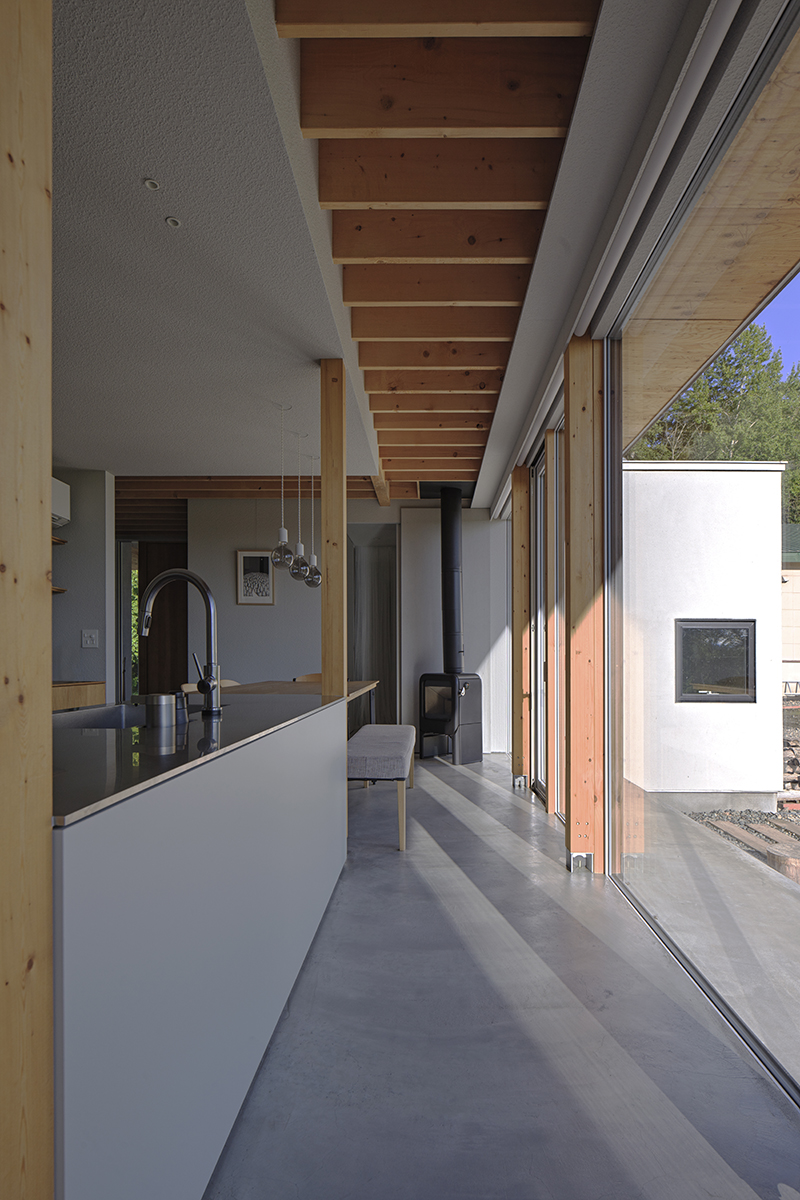 Neither too closed nor too open, the house maintains a balanced distance through which the presence of nature quietly enters the interior.