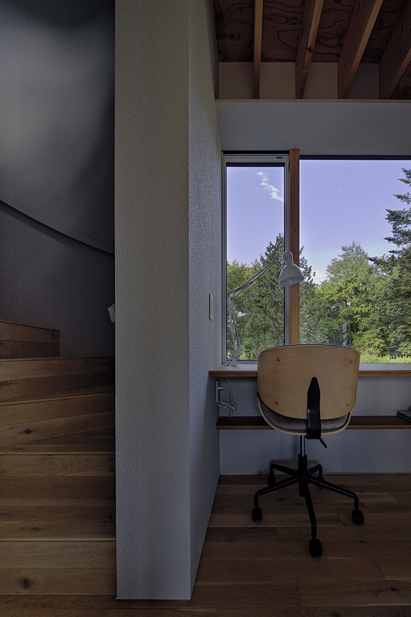 家の要となる場所として、四つの箱を緩やかにつなぎ、日々の暮らしの動線と視線が自然に交わる位置です。