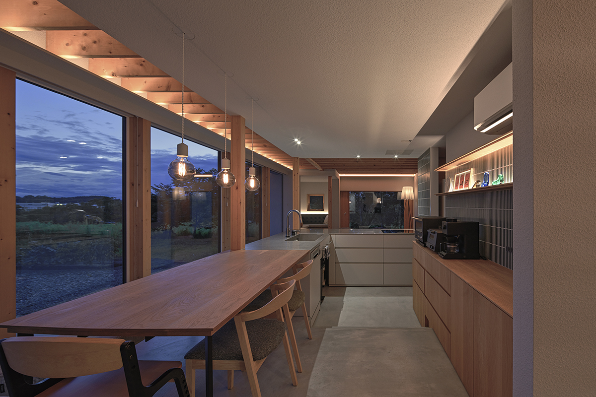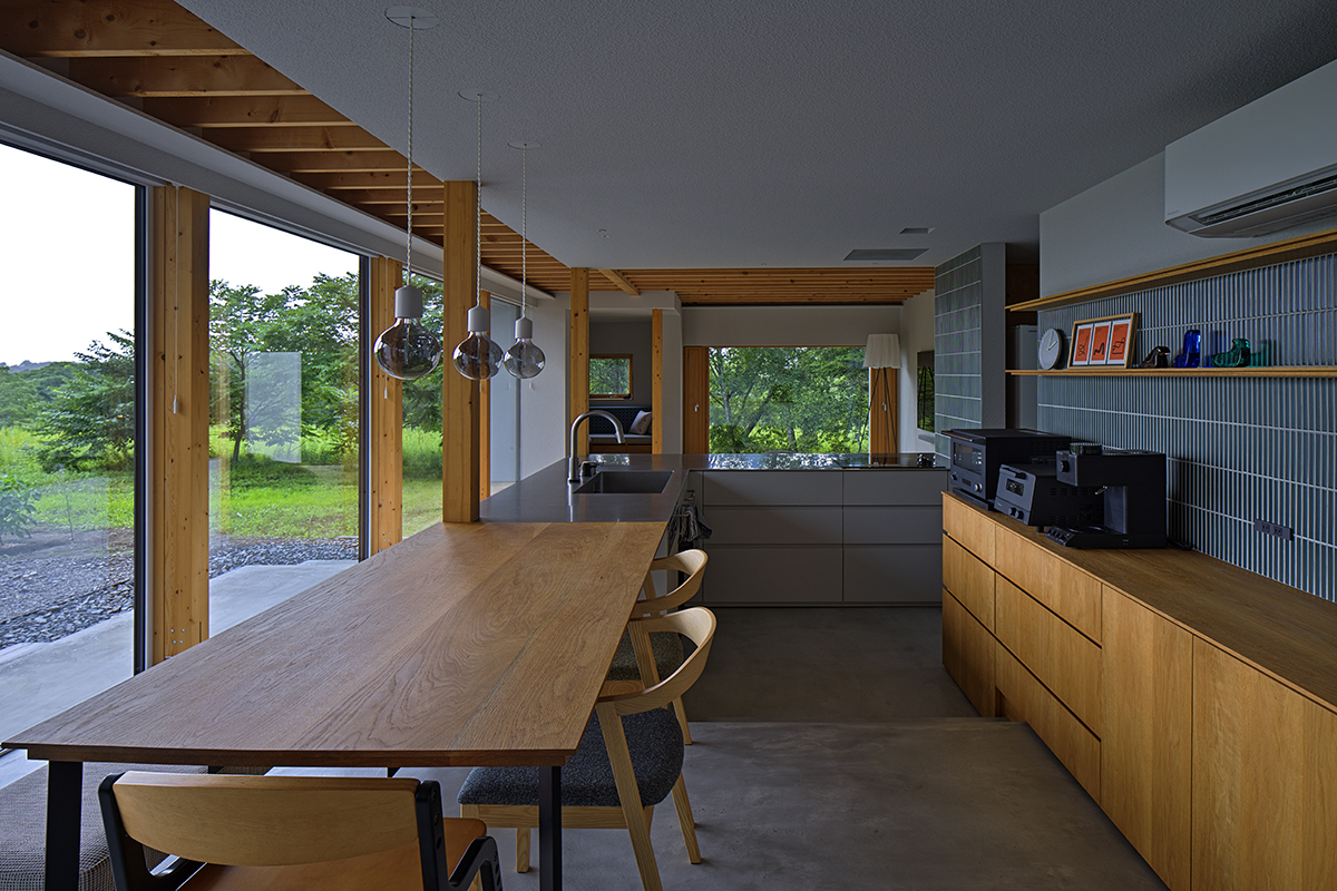 その中心には、もう一つの要素としてキッチンエリアを据えました。