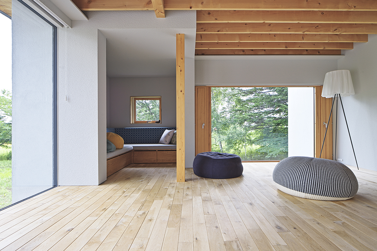 AIMA no IE in Makubetsu, Tokachi is a residence themed around generous spaces born from spatial margins.