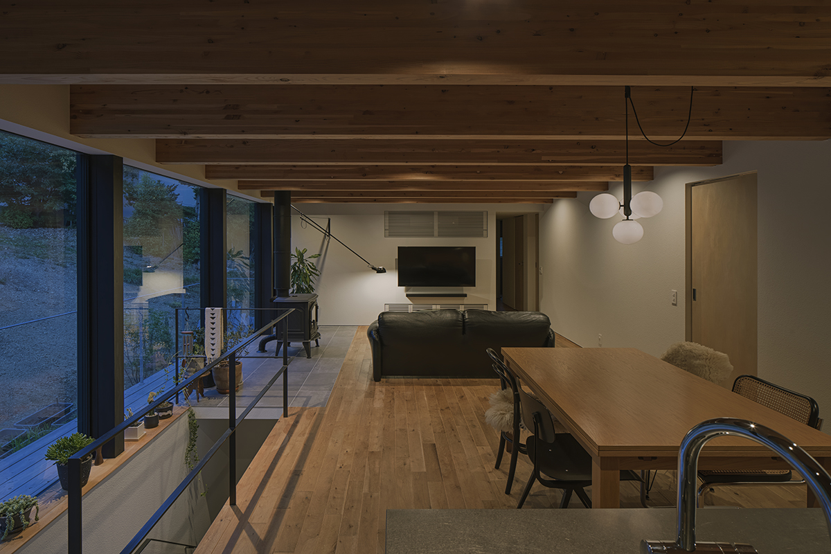 Rather than separating these two landscapes, the house gently overlaps them through light, views, and spatial composition, creating layered depth in daily life.