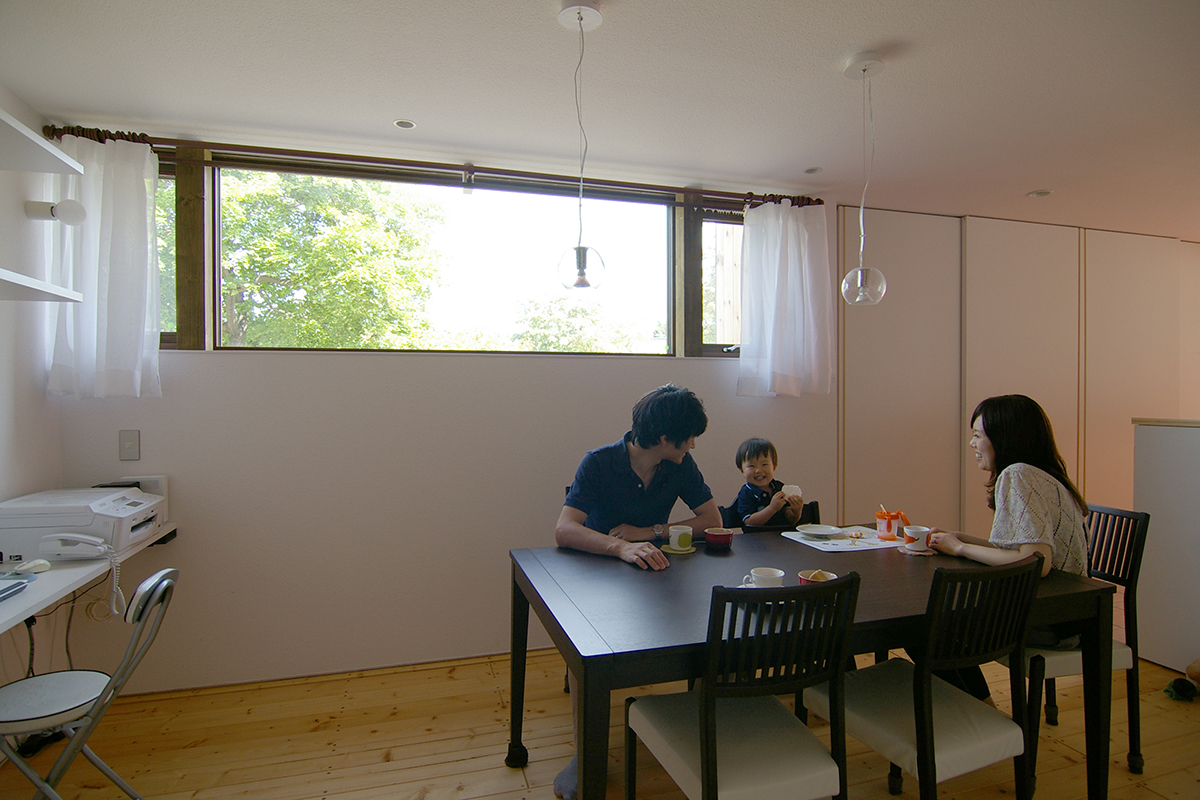 敷地は札幌市内の穏やかな住宅街に位置し、北および北東方向に緑が広がっている。