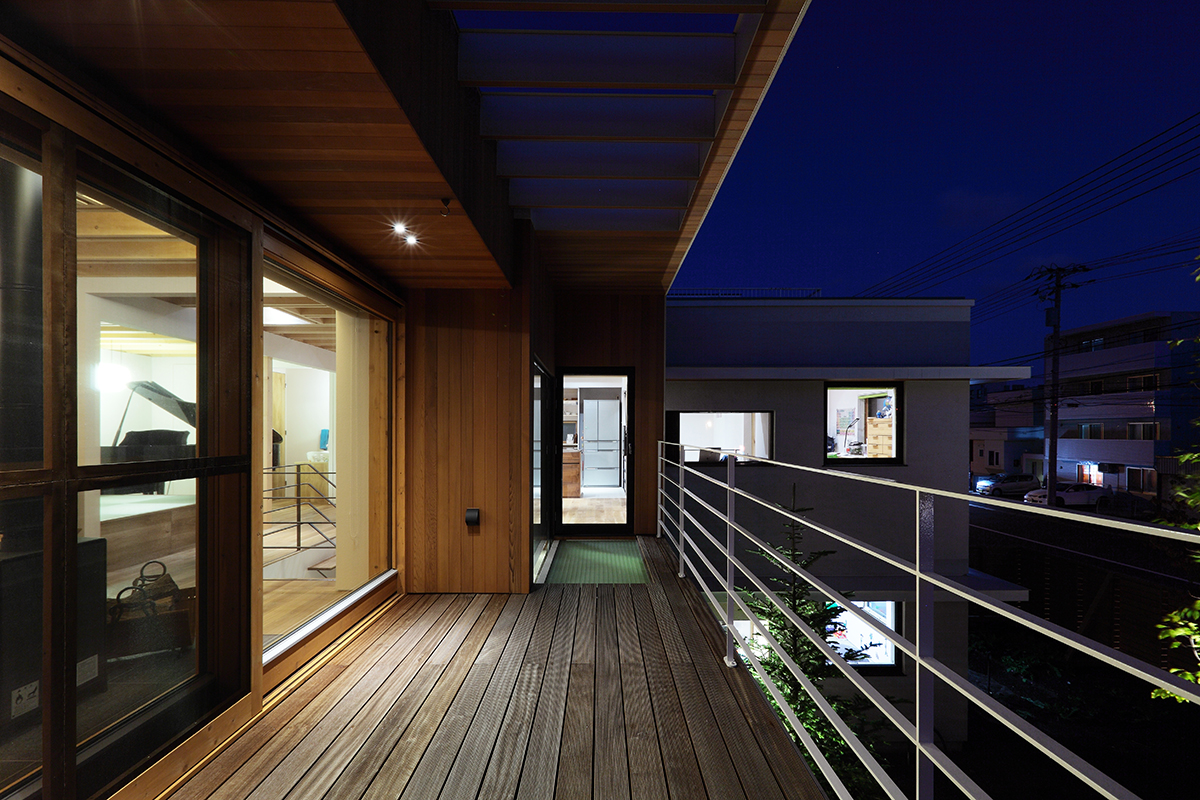 リビングからバルコニーへ、さらに空へと視線が連続するプランを構成した。