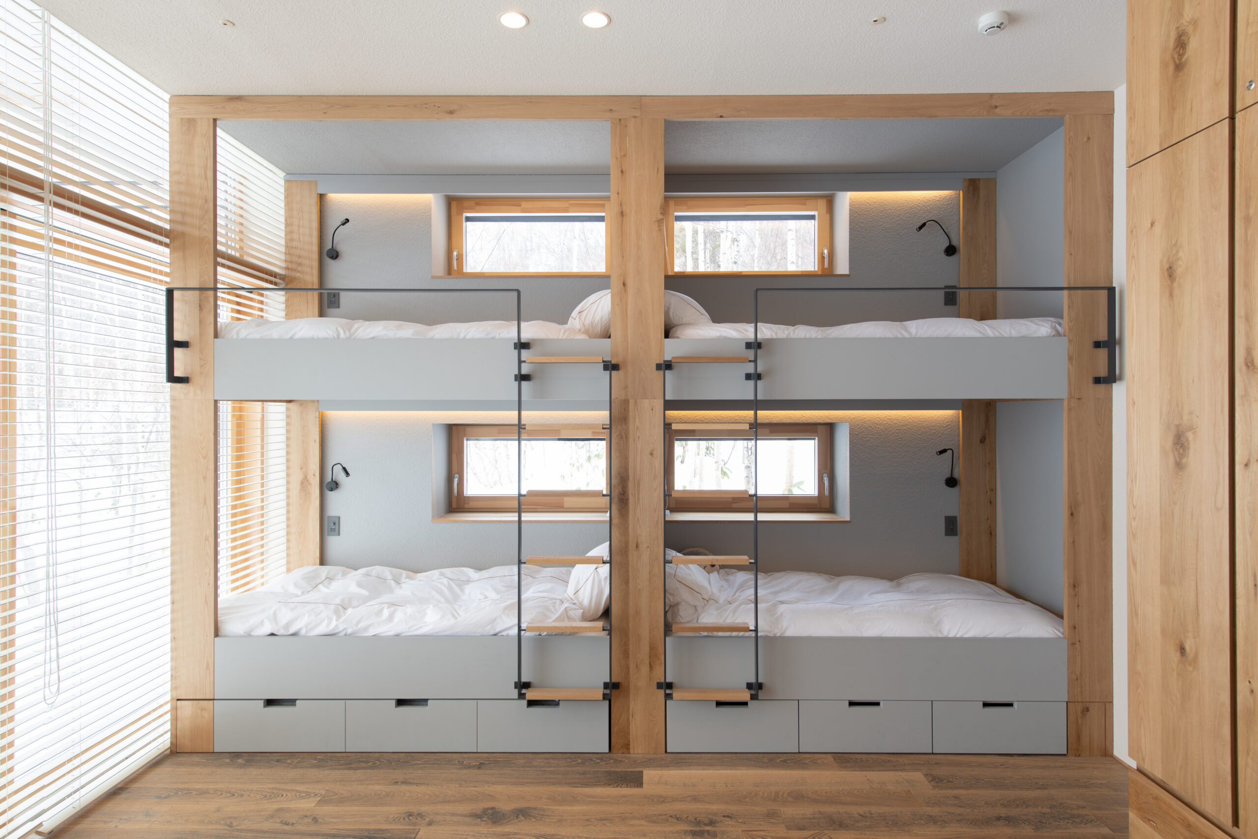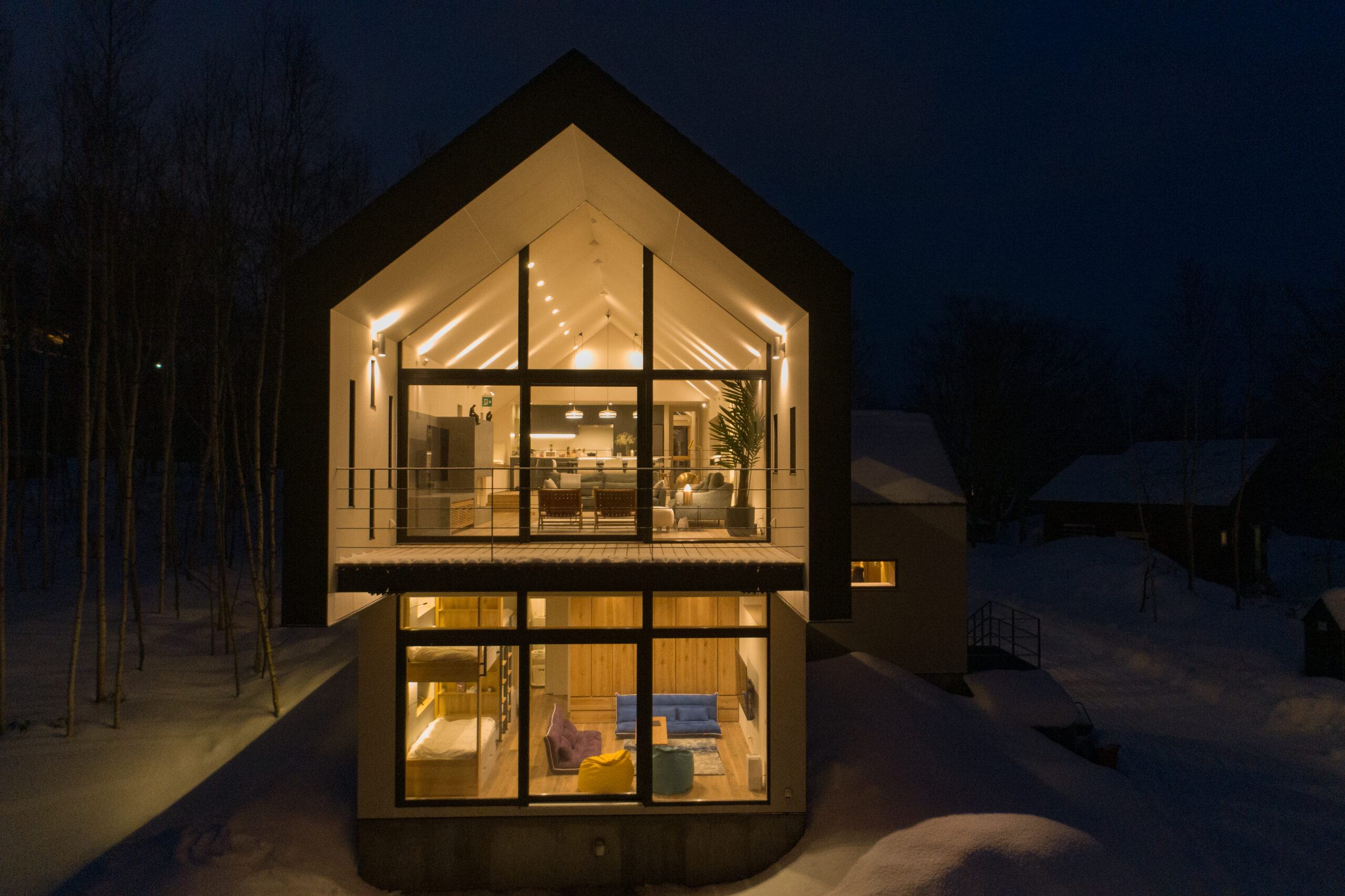 This villa is located in Niseko Town, Hokkaido, surrounded by the breathtaking beauty of nature throughout the seasons. The client’s families are close friends, and due to considerations of cost and construction time, they requested two identical buildings. To meet this request, we designed and positioned the two villas in a way that maintains a sense of unity while allowing each to have its own unique character.
