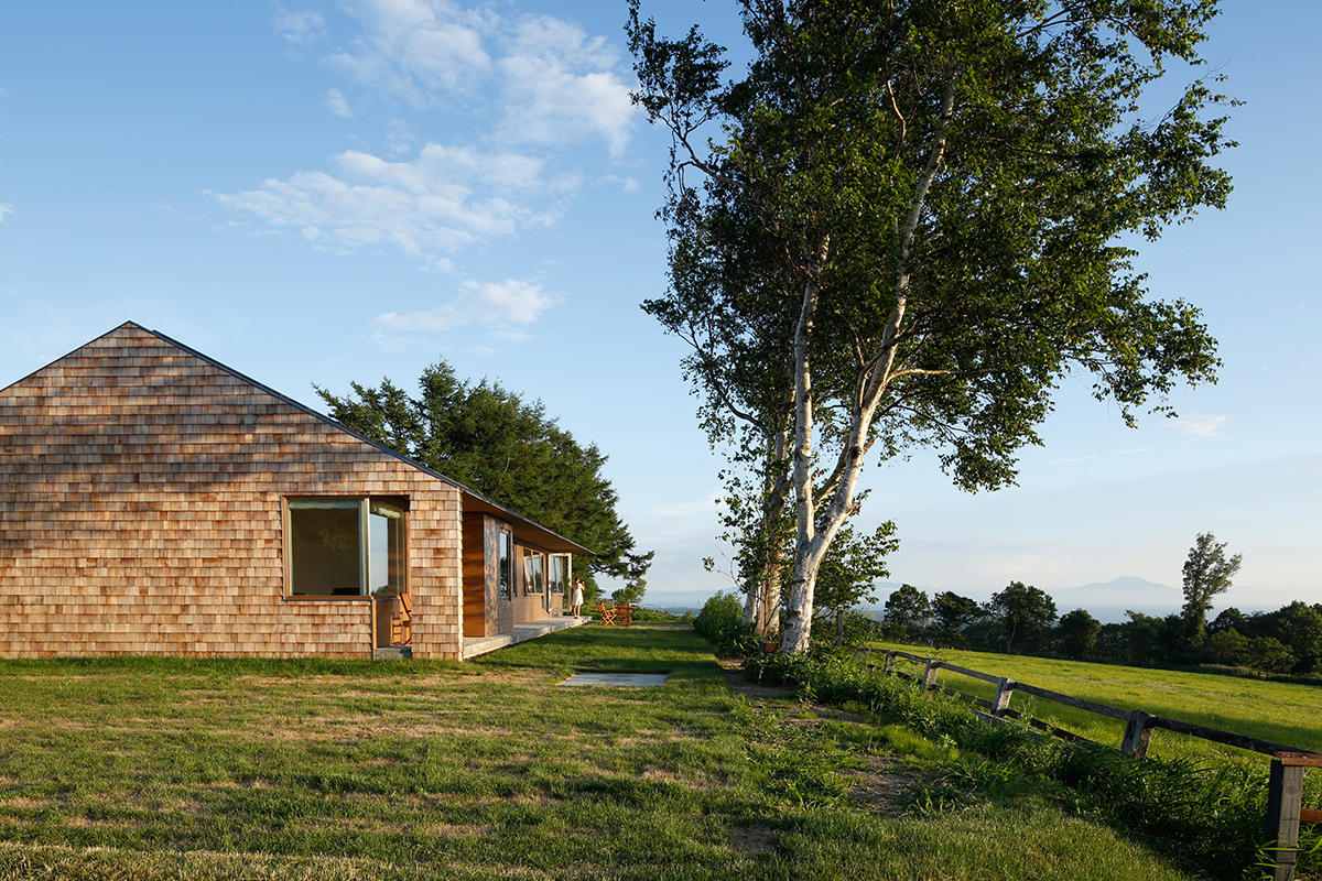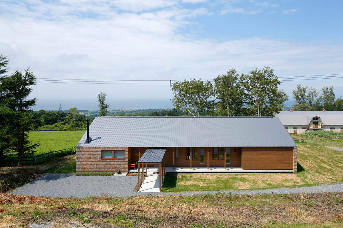 伊達市の小高い丘に位置する牧場に建つ住宅「ICON」。