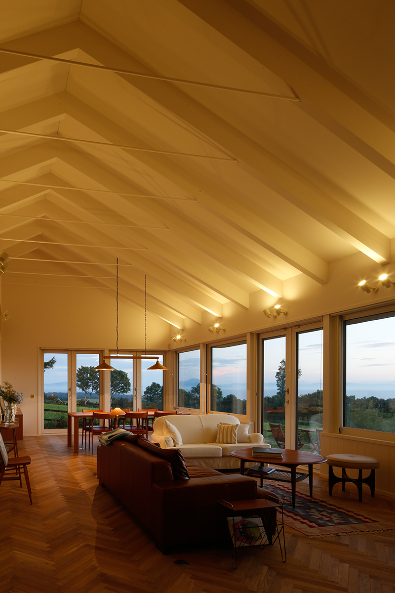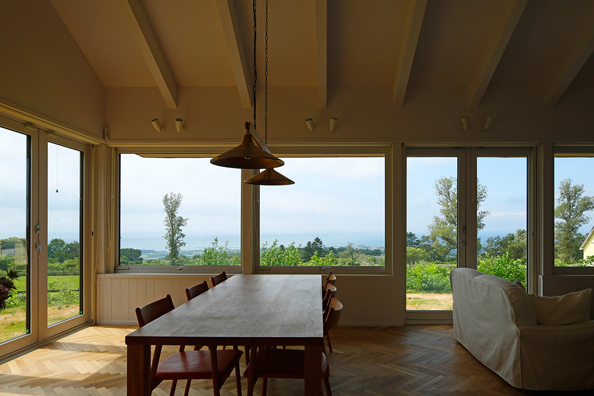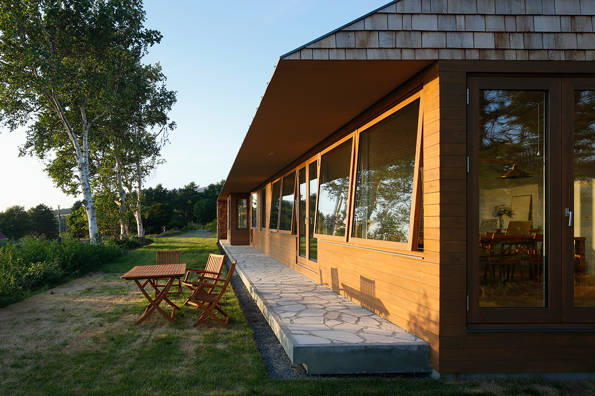CON is a house built on a gently elevated ranch in Date, Hokkaido.