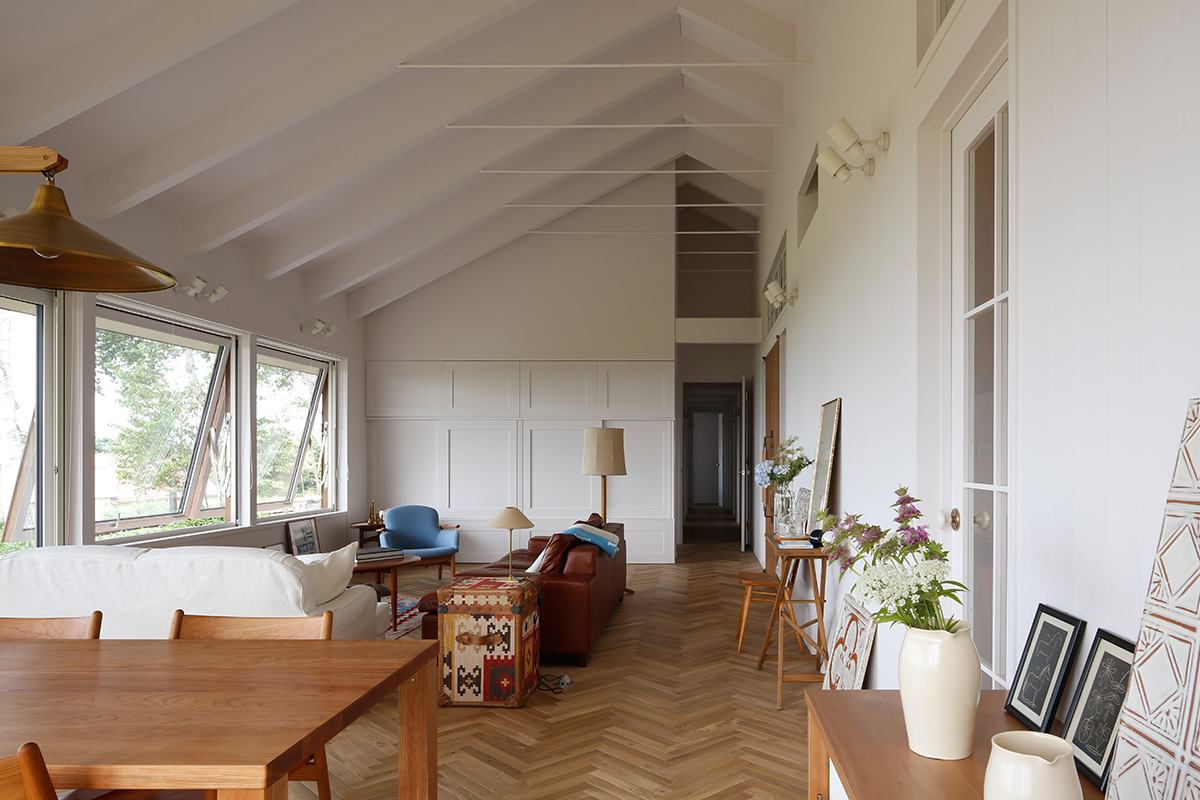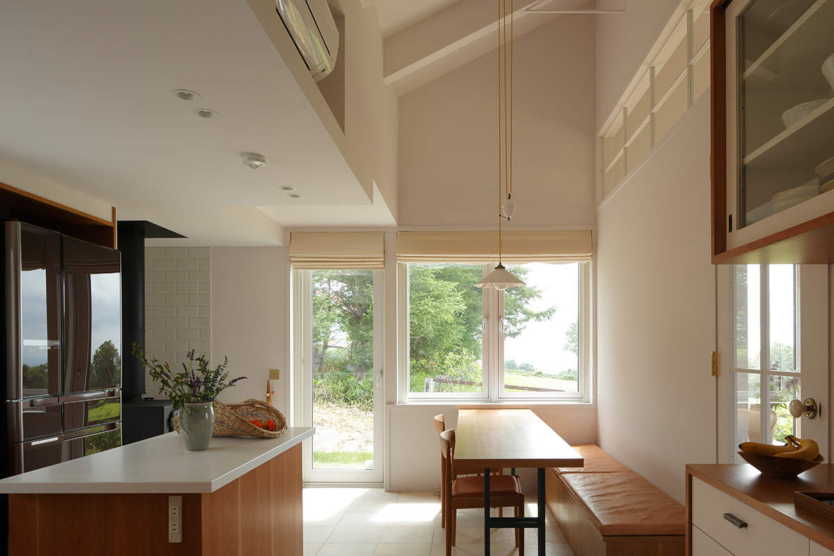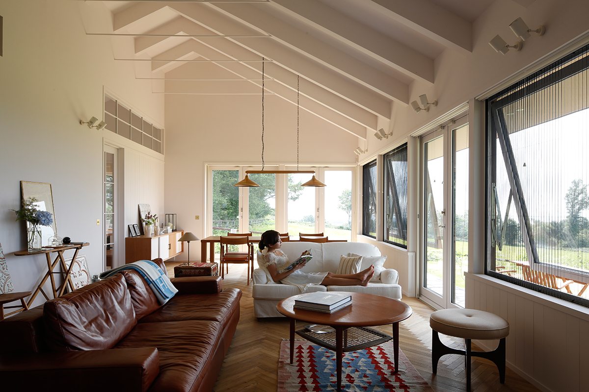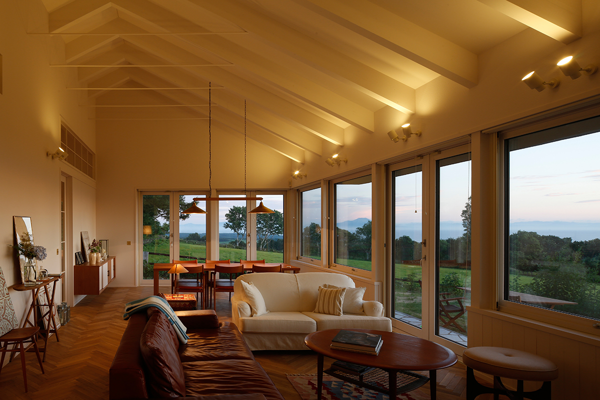 CON is a house built on a gently elevated ranch in Date, Hokkaido.