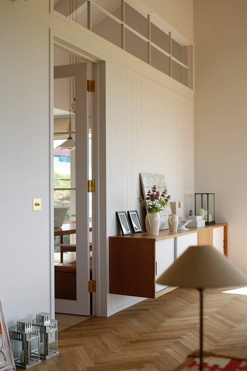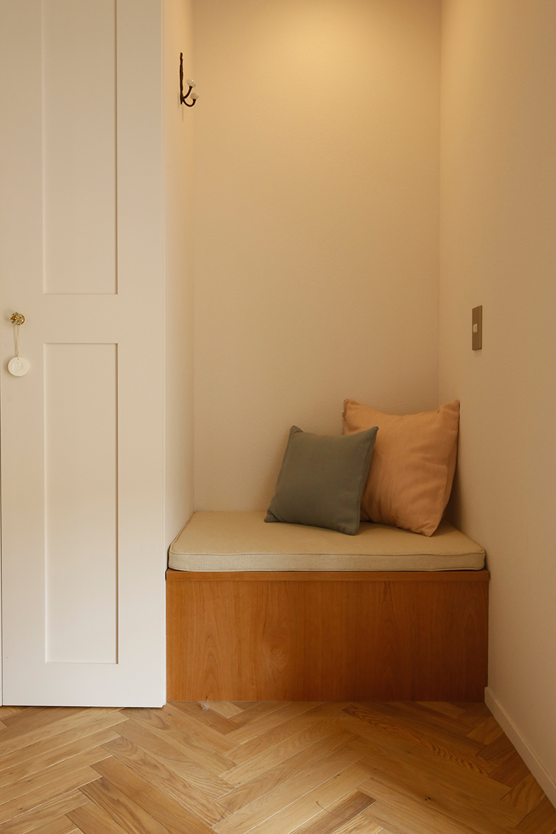 壁やドア、板張りの壁も白で統一。