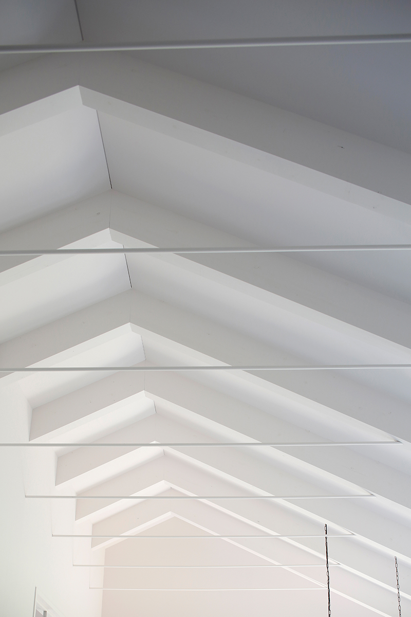 梁を現し、白く塗装された天井は